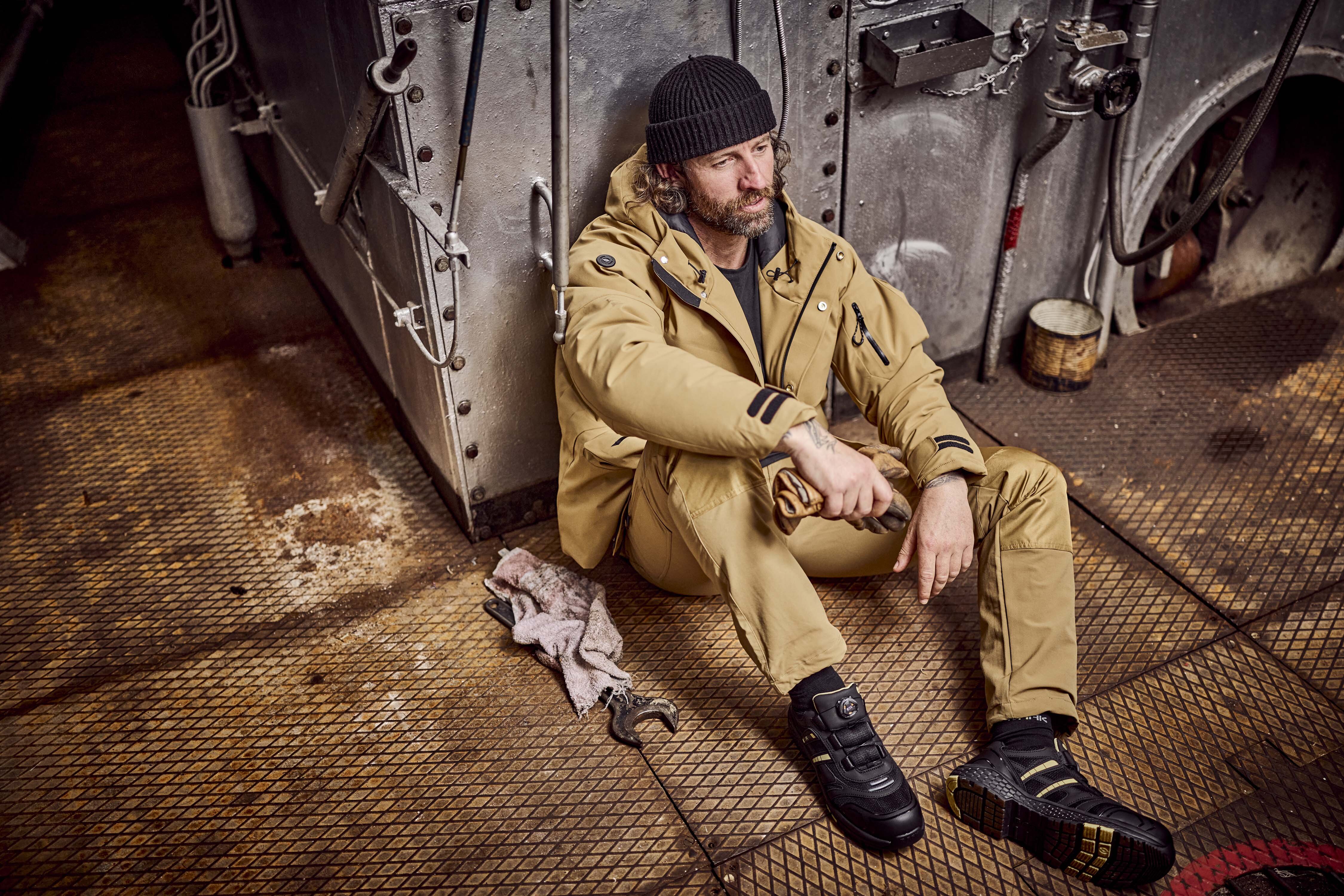 • Hohe Rutschhemmung – SR-zertifizierte Gummilaufsohle → sicherer Halt auf Keramik- & Stahlböden