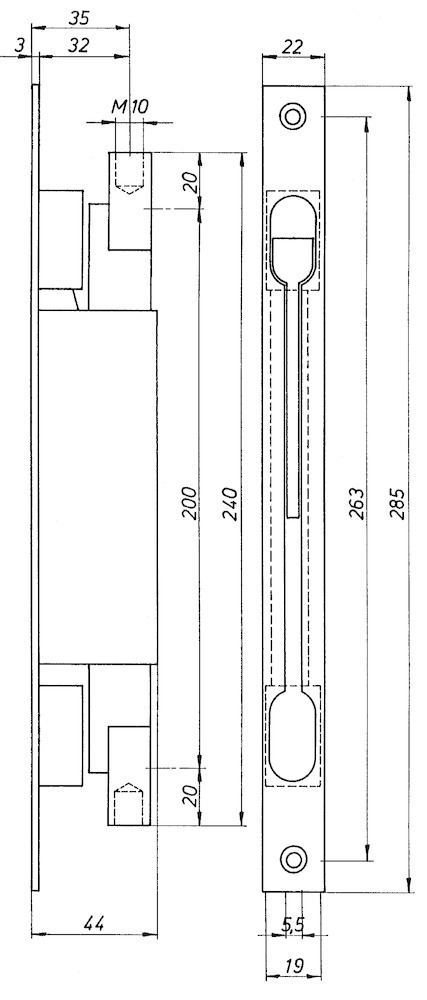 Deni Einsteck-Türkantriegel 22 x 285mm Stahl verzinkt 35mm Dorn, Falztreibriegel 9221 1035 33