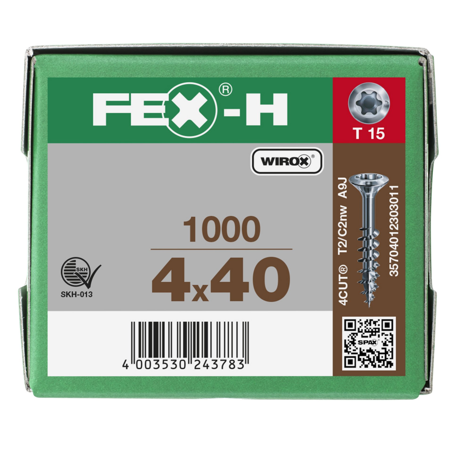 FEX-H Schrauben Senkkopf, Torx,4Cut, Wirox 4,0X40mm A3J Bremsrippen, gehärtet,1000Stk gleitbeschichtet, Teilgewinde