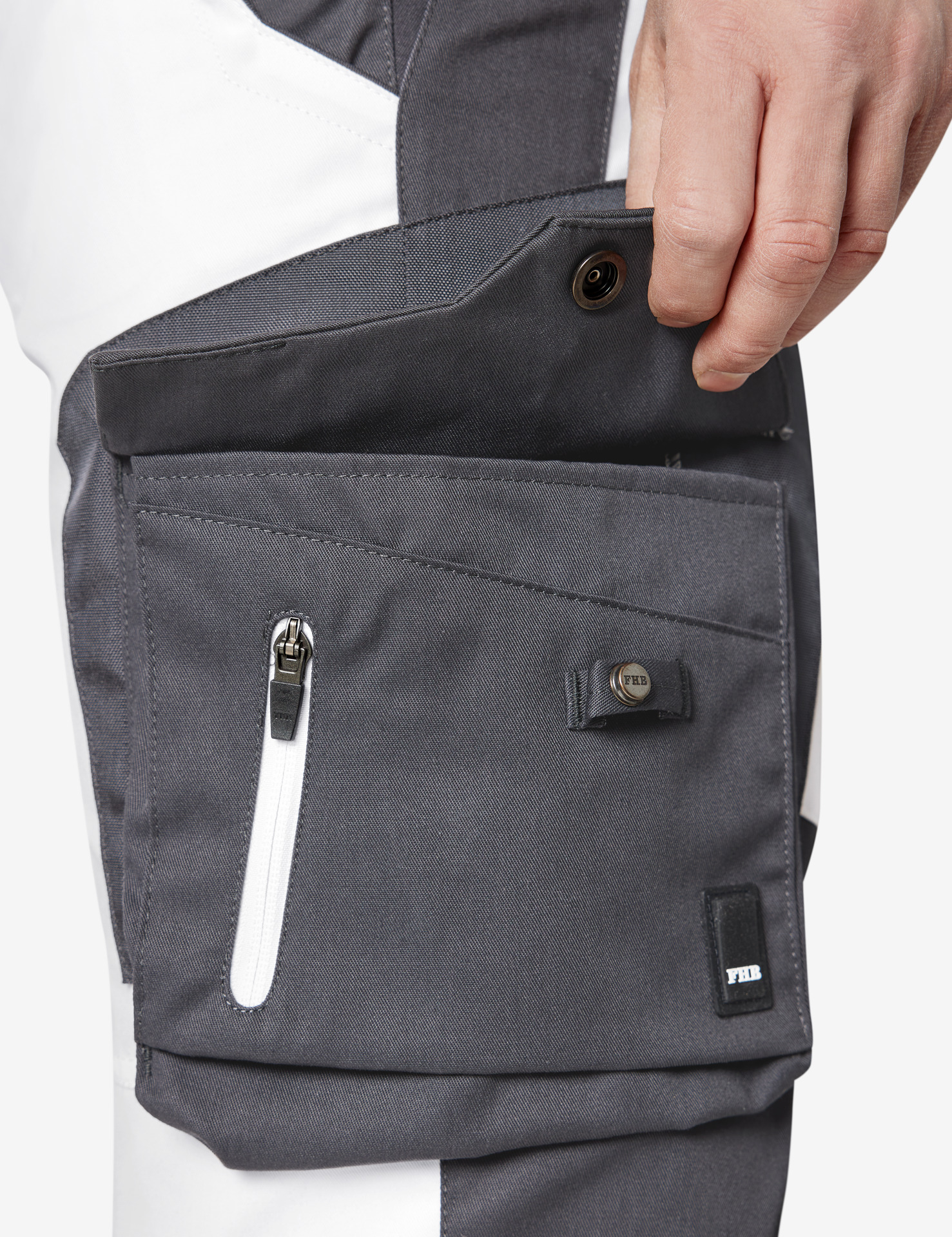 FHB WULF Bermuda, extra für FHB entwickeltes Gewebe im perfekten Mischungsverhältnis von Baumwolle und Polyester, elastische Seitenkeile für angenehmen Tragekomfort, höher geschnittener Bund im Rücken, jeweils 1 Handy- und 1 Zollstocktasche links und rechts, Zusatzfächer für Stift, Cutter und Messer, 1 Volumentasche, 2 geräumige Gesäßtaschen mit umgelegtem Taschenboden, passender Gürtelschlaufenabstand für FHB-Holstertaschen, innovativer FHB-Taschenverschluss