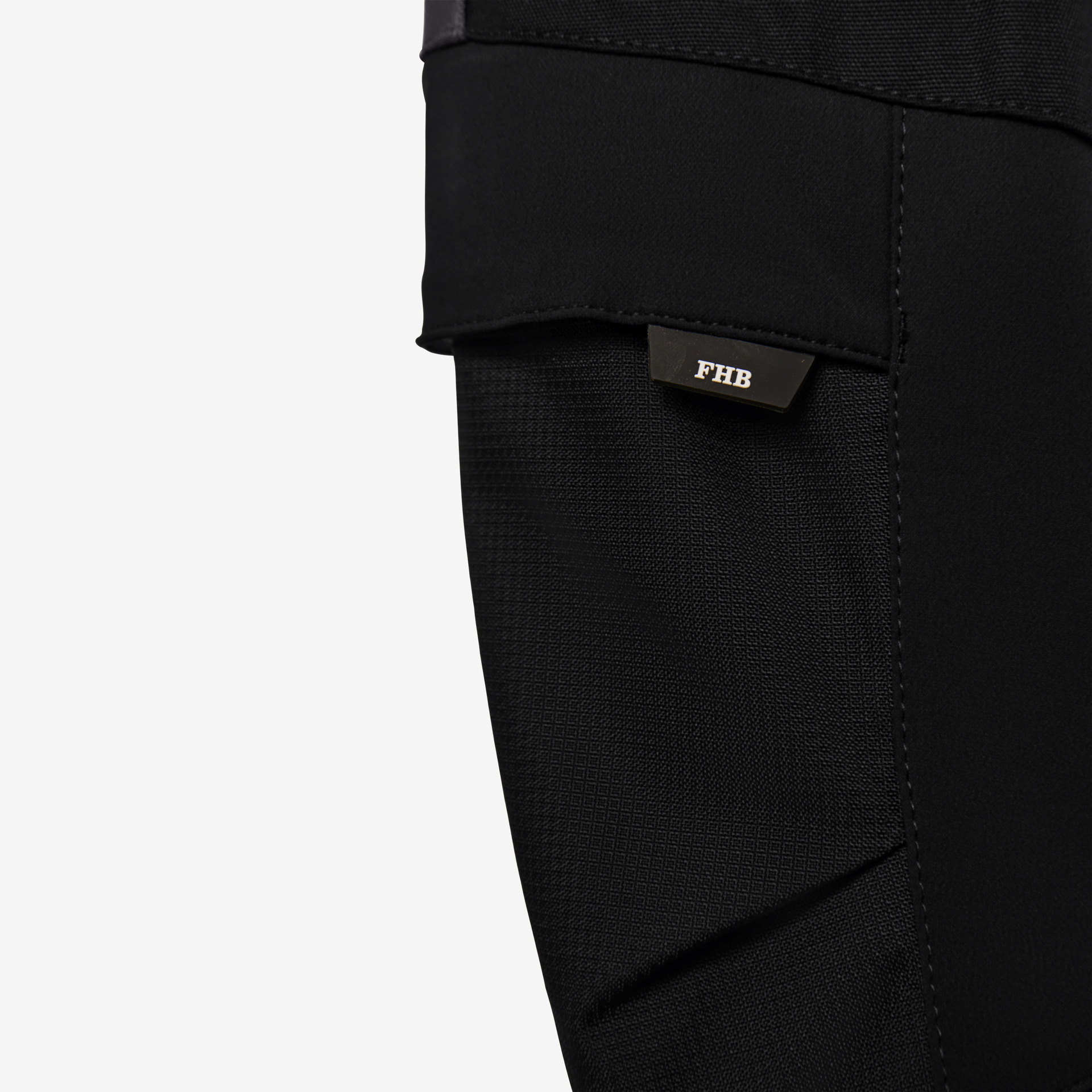 FHB LEO Arbeitshose elastisch, robust, elastisch im Gesäß-, Schritt- und Kniebereich, körperbetont, elastische 3D-Frinlock-Einsätze für Komfort-Passform, 100% Polyamid (Cordura) im Knie- und im Taschenbereich (Stift-, Messer- und Zollstock), Kniepolstereinschub von oben, mit RV verschließbarer Handytasche, dehnbare Volumentasche mit herausnehmbarem Magnetknopf verschließbar, 2 Gesäßpattentaschen, passender Gürtelschlaufenabstand für FHB-Holstertaschen, einfache Verlängerungsmöglichkeit der Hosenlänge um 5cm