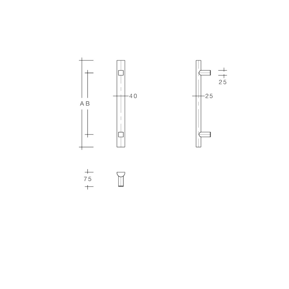 Format Stossgriff Halbrundprofil 40X25mm gerade Stützen 25X25mm, H=75mm L=800mm, 616843 4317784616843