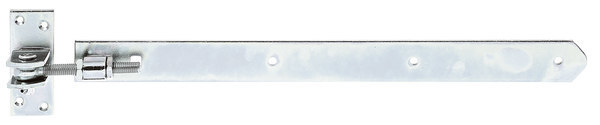 GAH Alberts Ladenband; Ausführung: verstellbar,gerade,Ende abgerundet; Material: Stahl; Oberfläche: galvanisch verzinkt,dickschichtpassiviert; Basis: Ladenband; Befestigungsart: zum Anschrauben; Einsatzbereich: Tor; Länge: 460 mm; Breite: 40 mm; Stärke: 5 mm; Vierkantlochung: 9 x 9 mm; Anzahl Rundlöcher: 7 St.; Rundlochdurchmesser: 7 mm,6 mm; Schraublochausführung: Senkkopf; Gewindedurchmesser (metrisch): M12; Zusatzinformation: Einstellen des Tores im montierten Zustand möglich.; Anzahl Vierkantlöcher: 1 St.; Verstellbereich max.: 30 mm
