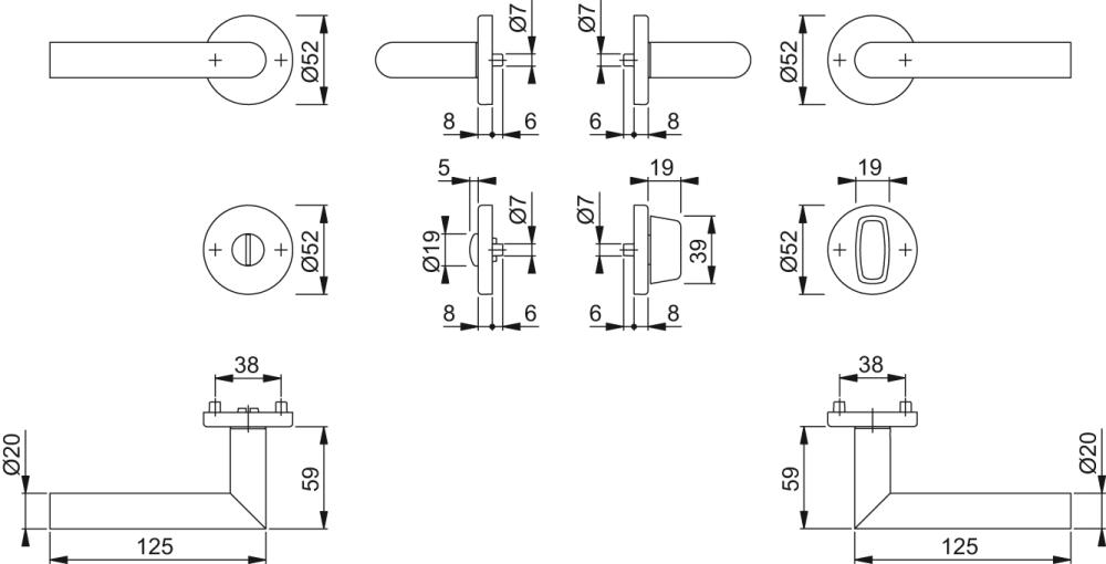 • Türgriffe mit HOPPE-Schnellstift-Verbindung (mit HOPPE-Vollstift), Rosetten mit Kunststoff-Unterkonstruktion