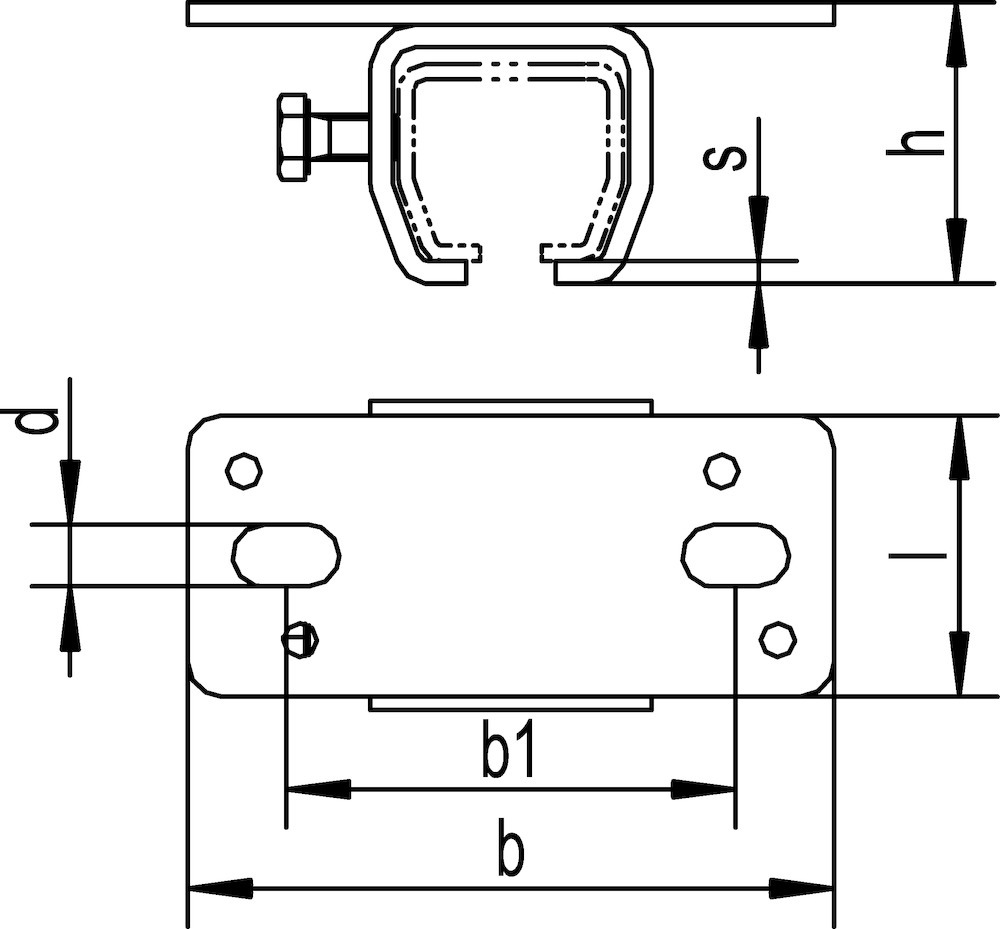 • Schienenhalter zur Deckenbefestigung für ein Profil