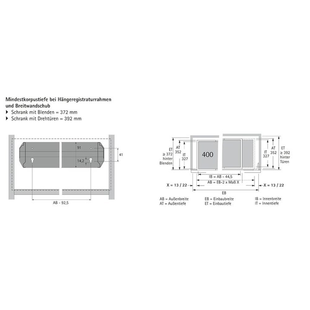 • Maß X = 13 mm für Standardschränke
