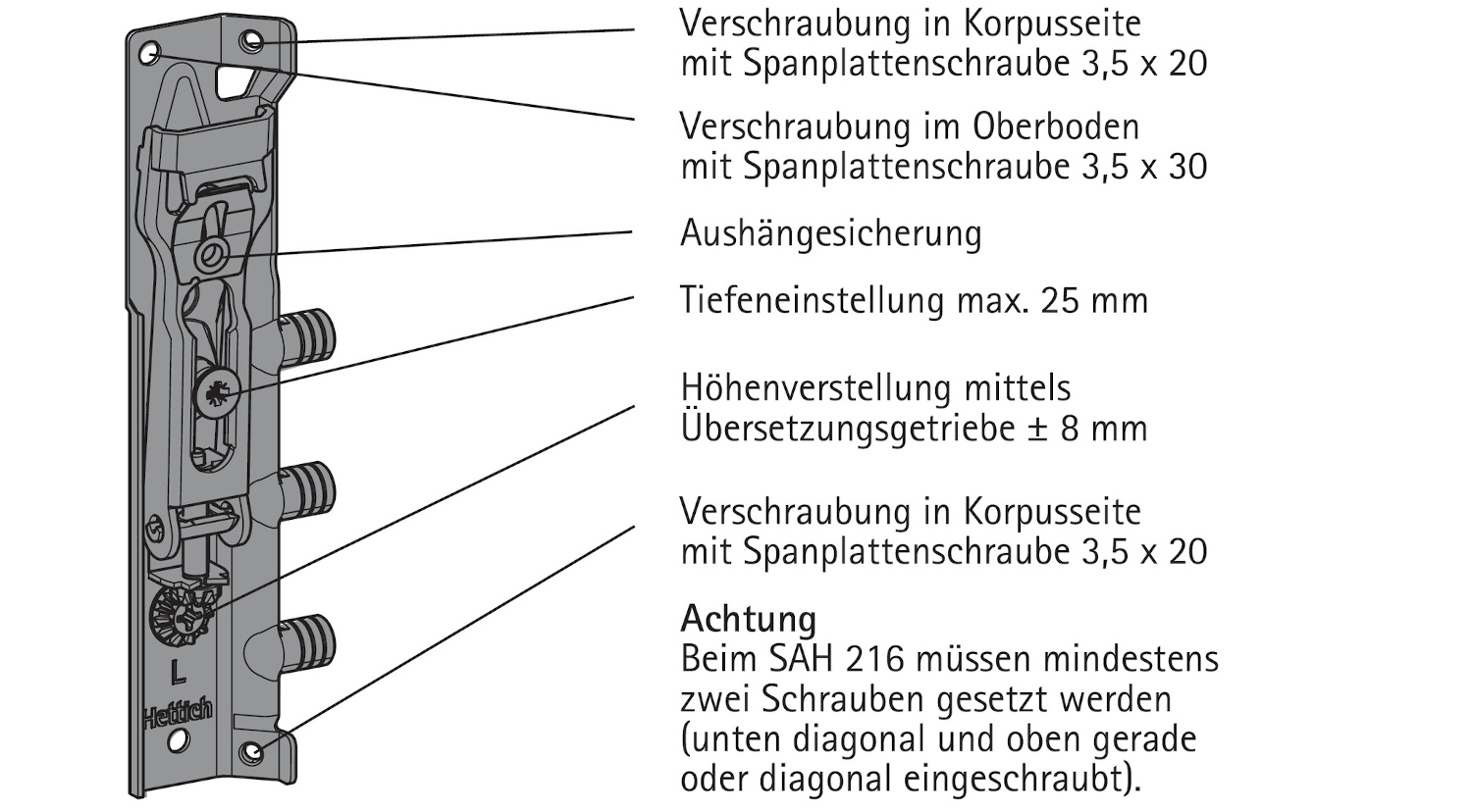• Abdeckkappen SAH 216 bitte separat bestellen
