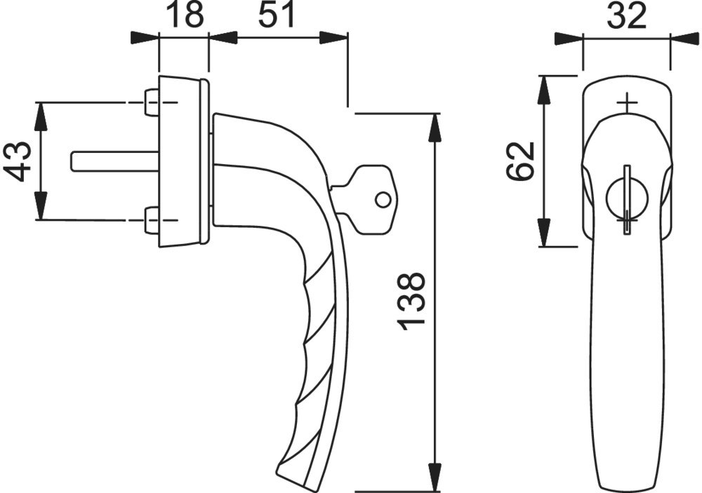 HOPPE Fenstergriff New York 0810S/US10 100NM; Produkttyp: Fenstergriff; Produkttyp (Hersteller): Fenstergriff; Ausführung: abschließbar; Rastung: 90°; Stütznocken: mit Stütznocken; Verriegelungsart: mit Druckknopfzylinder,mit selbsttätiger Verriegelung; Material: Aluminium; Montageart: aufliegend; Befestigungsart: verdeckt verschraubt; Technik: Secustik®,VarioFit®,Secu100®; Anwendung: für nach innen öffnende Fenster und Fenstertüren; Drehmoment-Widerstand: 100 N·m; Anzahl Schlüssel: 1 St.; Länge: 138 mm; Höhe: 51 mm; Befestigungsabstand: 43 mm; Form Rosette: eckig; Breite Rosette: 32 mm; Höhe Rosette: 62 mm; Stärke Rosette: 18 mm; Material Unterkonstruktion: Kunststoff; Norm: DIN EN 13126-3,DIN EN 1627; Gütesiegel: RAL-GZ 607/9; Einsatzbereich: Drehkipp; Fensterwerkstoff: Holz,Kunststoff,Aluminium; Vierkant: 7 mm; Stift vorstehend: 32-42 mm; DIN-Richtung: DIN Links-Rechts; Farbe: grau; Farbton: stahlfarbig; Oberfläche: eloxiert; Aufdruck: mit Logo; Schließung: gleichschließend; Schließungsnummer: H001-EW