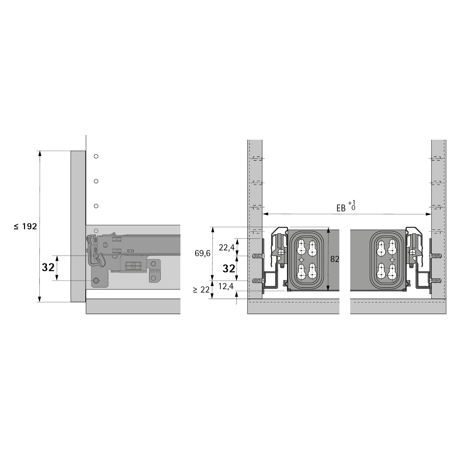 Min. Einbaubreite: EB 292 mm / 392 mm