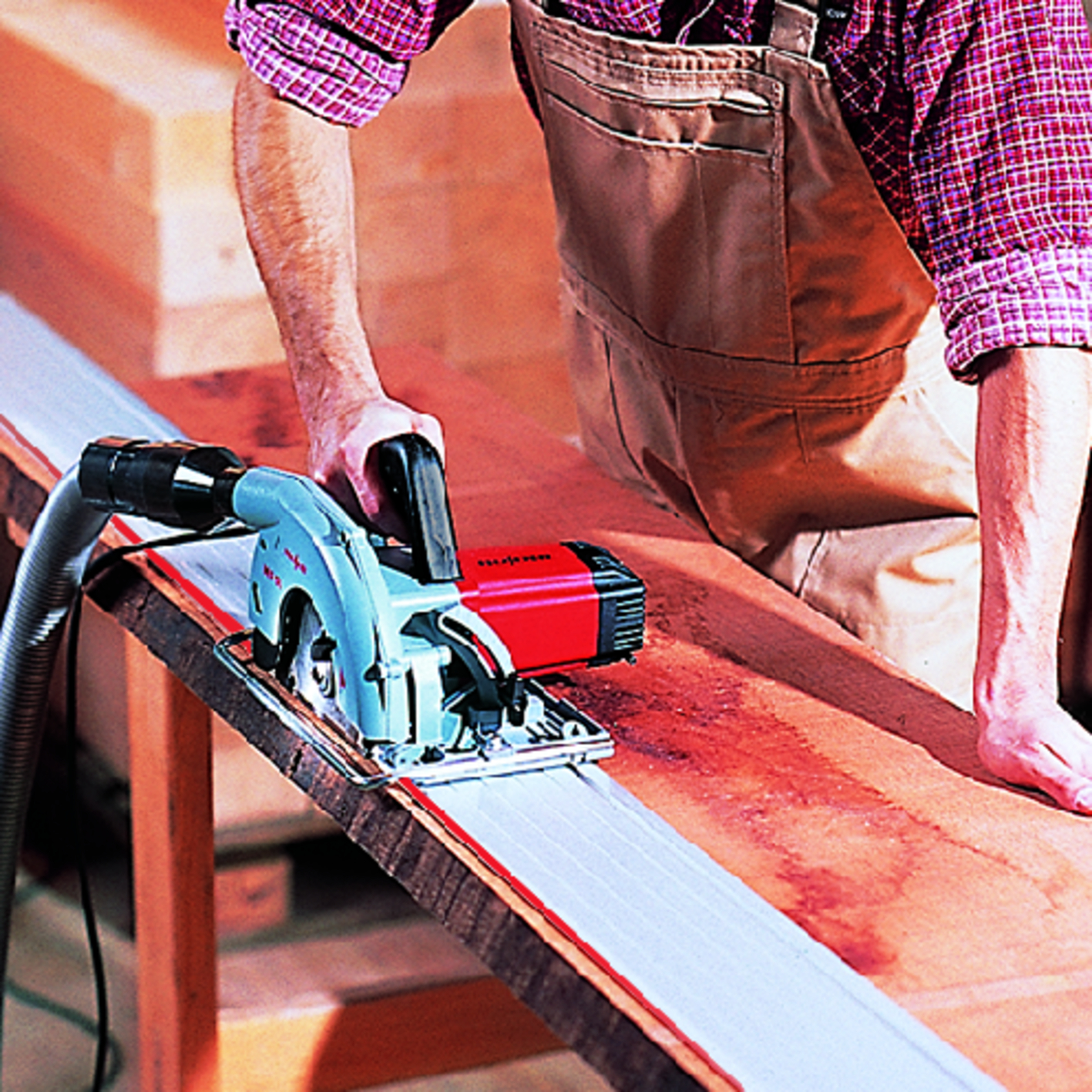 Die Säge für den rauhen Alltag - die MS 55 von MAFELL. Entwickelt zum Schneiden unter härtesten Bedingungen. Hier einige der Standards: Unverwüstlich und beanspruchbar, dennoch - nur 3,3 kg leicht. Wie alle unsere Handkreissägen nutzt auch die MS 55 unser Führungsschienensystem. Exakt und einfach in der Handhabung. Sägen ohne wenn und aber!