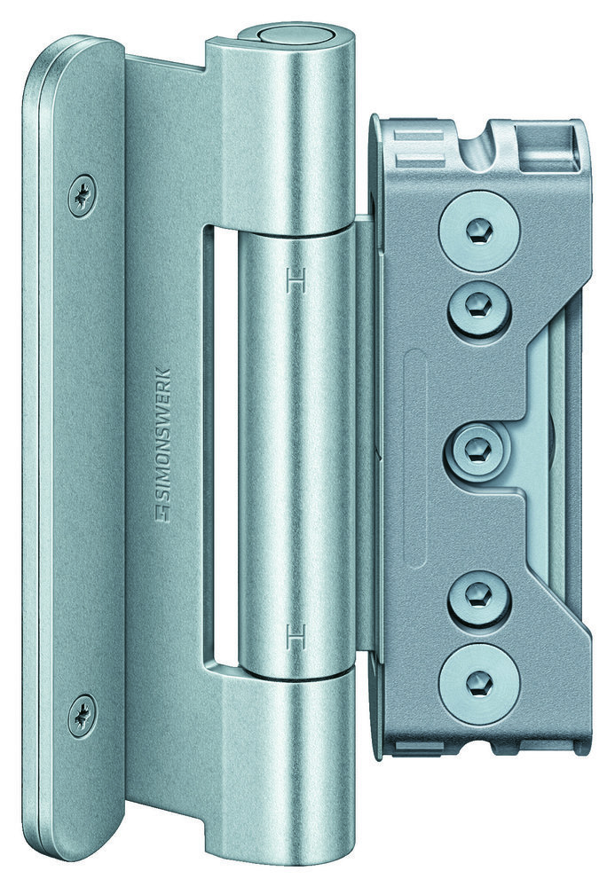 SIMONSWERK Einfräsband BAKA Protect 4040 3D FD; Produkttyp: Einfräsband; Produkttyp (Hersteller): Haustürband; Ausführung: mit Flügeldichtung; Bandkonstruktion: 3-teilig; Rahmenausführung: Blockzarge,Blendrahmen; Falzausführung: gefälzt; Durchmesser Bandrolle: 20 mm; Länge Bandrolle: 140 mm; Gesamtlänge: 140 mm; Tragkraft: 160 kg; Lagerung: Gleitlager; Einsatzbereich: Haustür; Türwerkstoff: Holz; Andruckverstellung min.: -3 mm; Andruckverstellung max.: 3 mm; Höhenverstellung min.: -3 mm; Höhenverstellung max.: 3 mm; Seitenverstellung min.: -3 mm; Seitenverstellung max.: 3 mm; Höhe Flügelteil: 140 mm; Höhe Rahmenteil: 110 mm; Breite Flügelteil: 31 mm; Breite Rahmenteil: 35 mm; Befestigungsart Flügelteil: zum Aufschrauben; Befestigungsart Rahmenteil: zum Aufschrauben; Fräserdurchmesser: 20 mm; Norm: DIN EN 1935; CE Kennzeichnung: Ja; Stiftsicherung: ohne Stiftsicherung; DIN-Richtung: DIN Links-Rechts; Material: Stahl; Oberfläche: topzink; kombinierbar mit: BAKA Protect 4040 3D FD; Zusatzinformation: für Türen mit Überschlagdichtung,für Systemprüfungen nach DIN EN 1627 ff. einsetzbar; EN 1935 - Gebrauchsklasse: Klasse 2; EN 1935 - Dauerfunktionstüchtigkeit: Klasse 7; EN 1935 - Masse der Prüftür: Klasse 3; EN 1935 - Eignung für Feuer-/Rauchschutztüren: Klasse 1; EN 1935 - Sicherheit - Personenschutz: Klasse 1; EN 1935 - Korrosionsbeständigkeit (nach EN 1670): Klasse 4; EN 1935 - Schutz - Einbruchhemmung: Klasse 0; Klassifizierungsschlüssel EN 1935: 2 7 3 1 1 4 0 10; EN 1935 - Bandklasse: Klasse 10