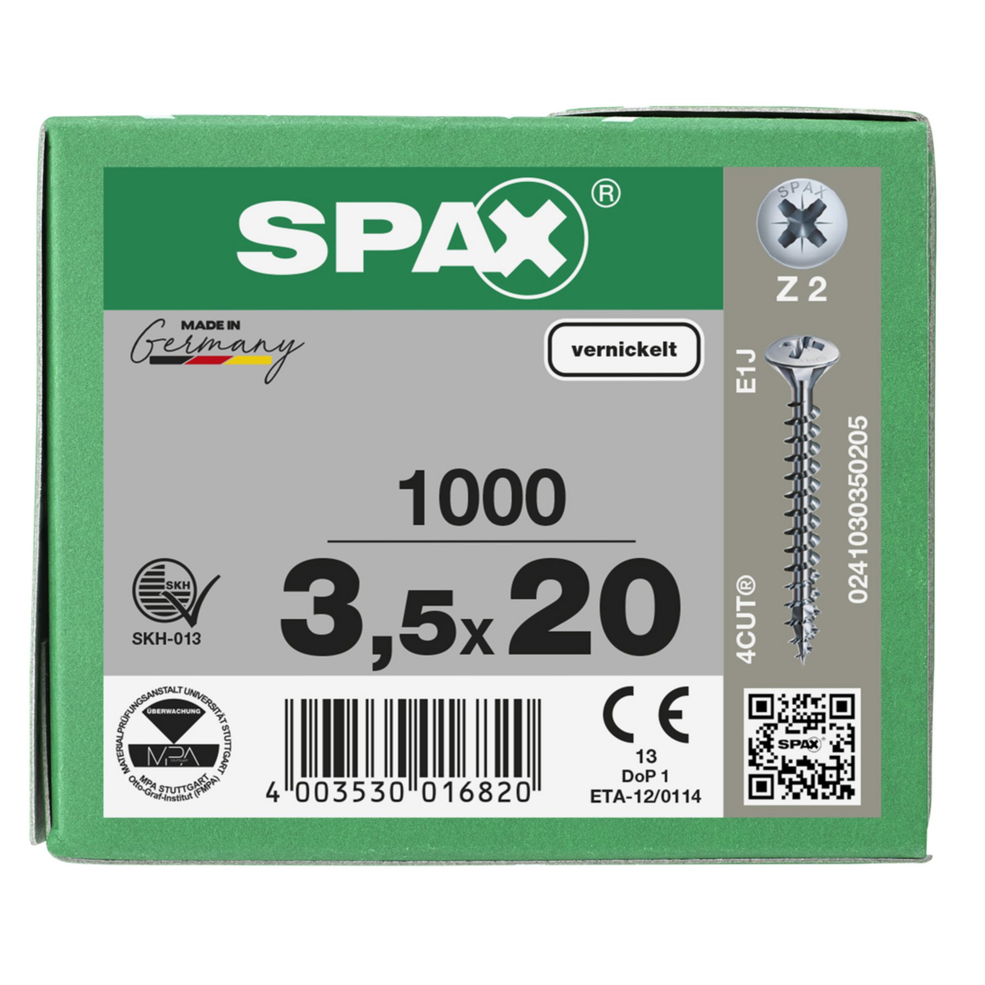Spax Schrauben Linsensenkkopf 3,5X20 PZ2 vernickelt 1000Stk 241030350205