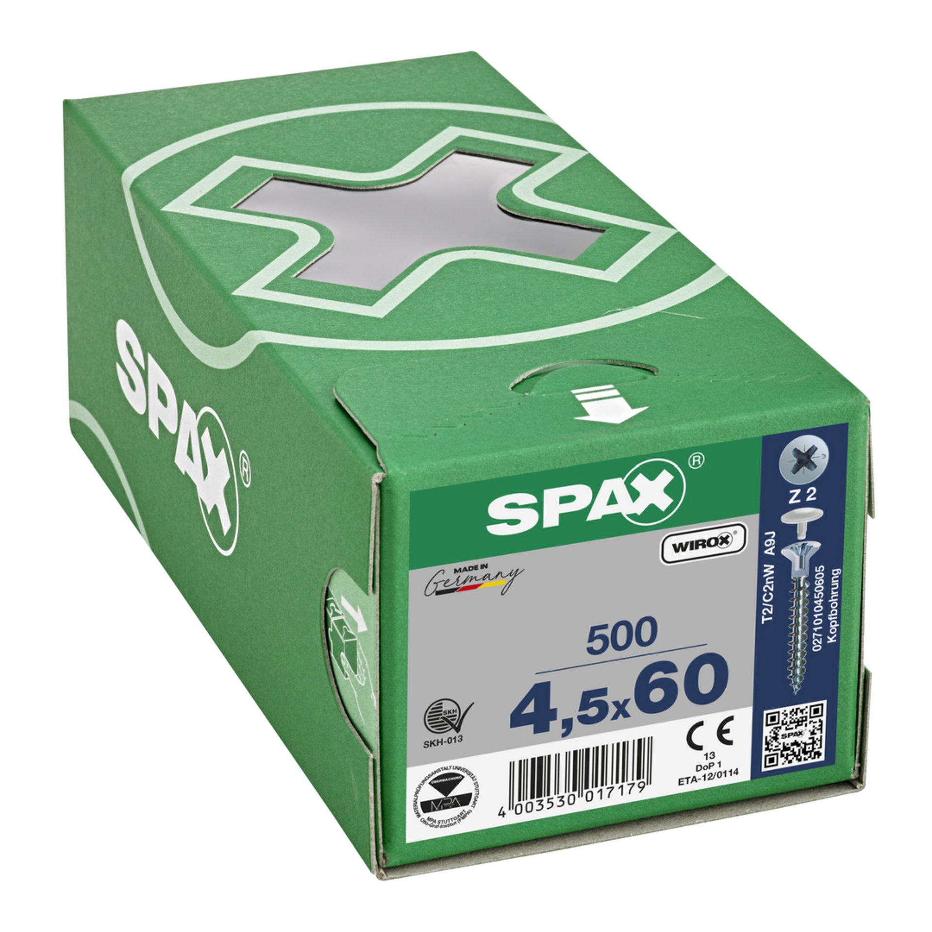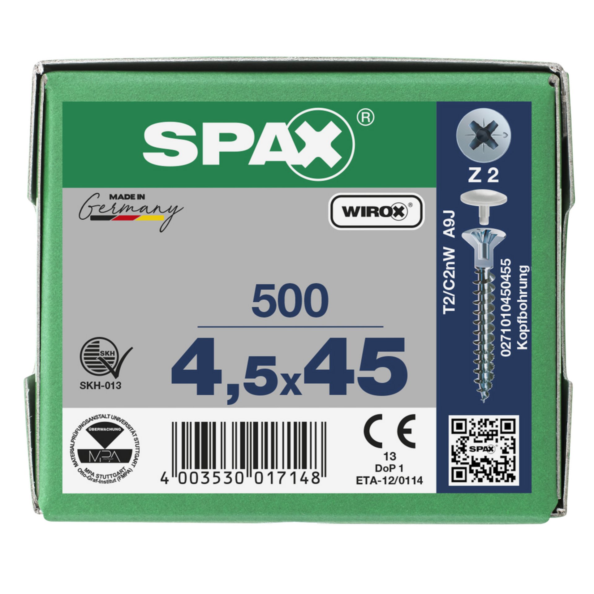 Spax Schrauben 4,5X45 PZ2 m. Kopfbohrung hell verzinkt 500Stk 271010450455