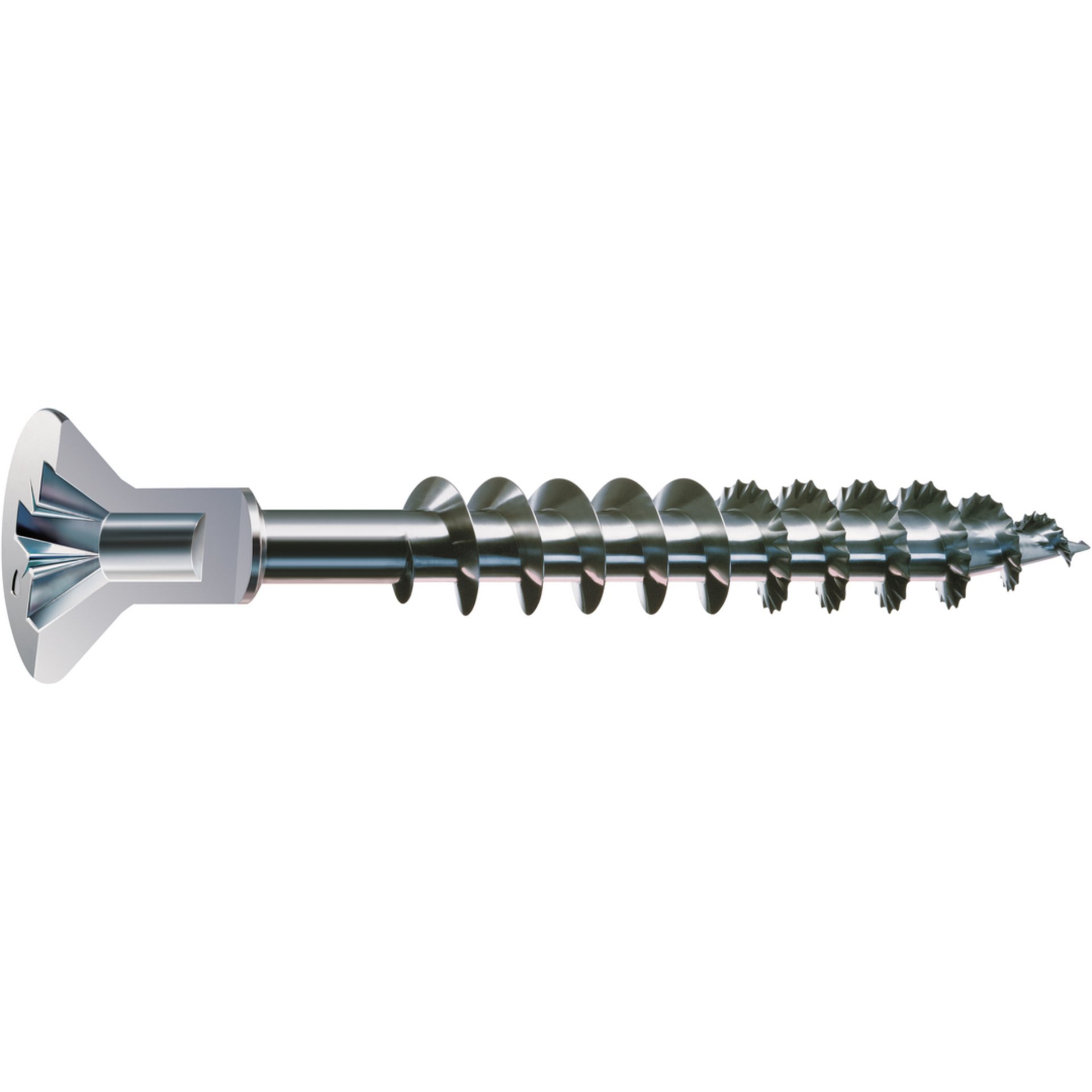 Die Universalschraube ist der absolute Allrounder im Sortiment von SPAX. Sie kann fast alles – zum Beispiel ganz ohne Vorbohren in Nadelhölzer wie Fichten- und Kiefernholz sowie in die gängigen Holzwerkstoffplatten (MDF, Span- und OSB-Platten) eingedreht werden. Dabei spielt unsere Universalschraube ihre Überlegenheit vor allem im Innenausbau- und Möbelbaubereich aus, aber auch außen ist sie mit dem passenden Korrosionsschutz gut verwendbar. Durch ihre besondere Gewindegeometrie ist der Eindrehwiderstand beim Schrauben wesentlich geringer als bei herkömmlichen Schrauben, was nicht nur Ihre Kräfte und Nerven, sondern auch den Akku des eingesetzten Schraubers schont. Ein Aufspleißen des Holzes in Randnähe wird zuverlässig unterbunden. Das bedeutet für Sie: Sie drehen mehr Schrauben pro Akkuladung ein, und Sie müssen sich keine Sorgen um aufgerissene Holzenden mehr machen.