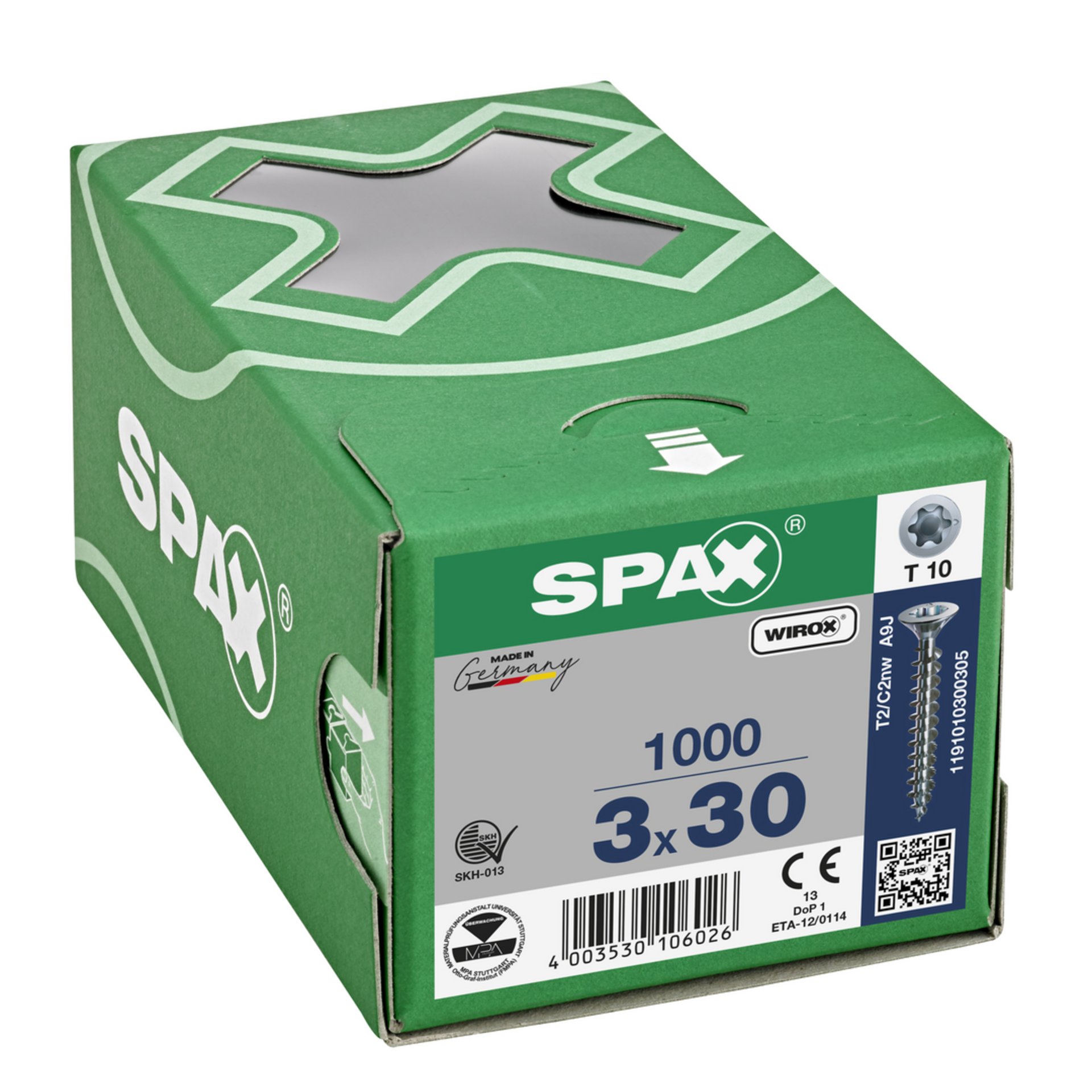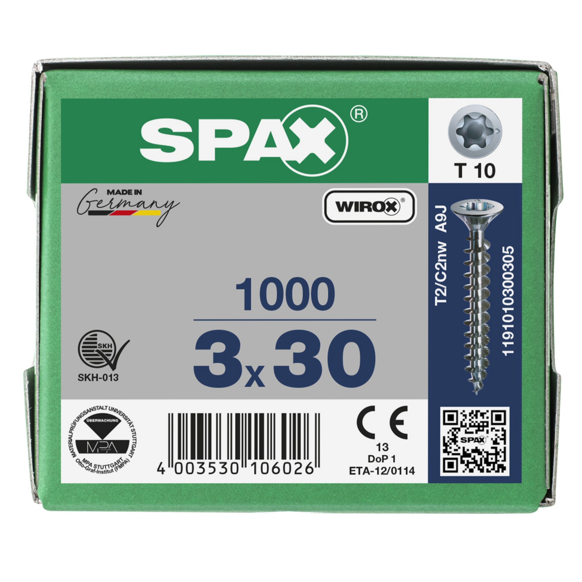 Spax Schrauben Torx 3,0X30mm Wirox T10 Vollgewinde Bremsrippe Senkkopf 1000Stk 1191010300305