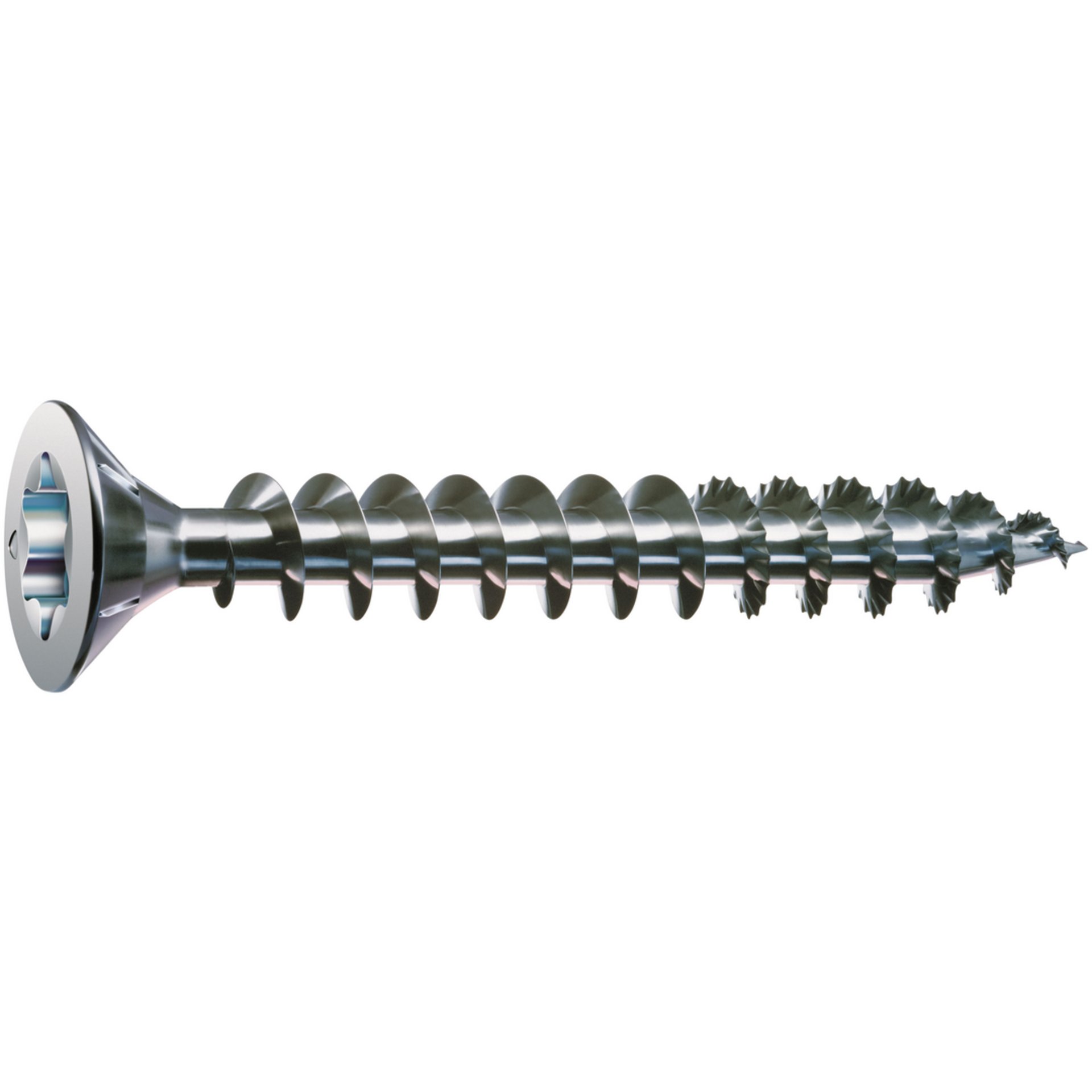 Die Universalschraube ist der absolute Allrounder im Sortiment von SPAX. Sie kann fast alles – zum Beispiel ganz ohne das nervige Vorbohren in Nadelhölzer wie Fichten- und Kiefernholz sowie in die gängigen Holzwerkstoffplatten (MDF, Span- und OSB-Platten) eingedreht werden. Dabei spielt unsere Universalschraube ihre Überlegenheit vor allem im Innenausbau- und Möbelbaubereich aus, aber auch außen ist sie mit dem passenden Korrosionsschutz gut verwendbar. Durch ihre besondere Gewindegeometrie ist der Eindrehwiderstand beim Schrauben wesentlich geringer als bei herkömmlichen Schrauben, was nicht nur Ihre Kräfte und Nerven, sondern natürlich auch den Akku des eingesetzten Schraubers schont. Ein Aufspleißen des Holzes in Randnähe wird nahezu vollständig unterbunden. Das bedeutet für Sie: Sie drehen mehr Schrauben pro Akkuladung ein, und Sie müssen sich keine Sorgen um aufgerissene Holzenden mehr machen!