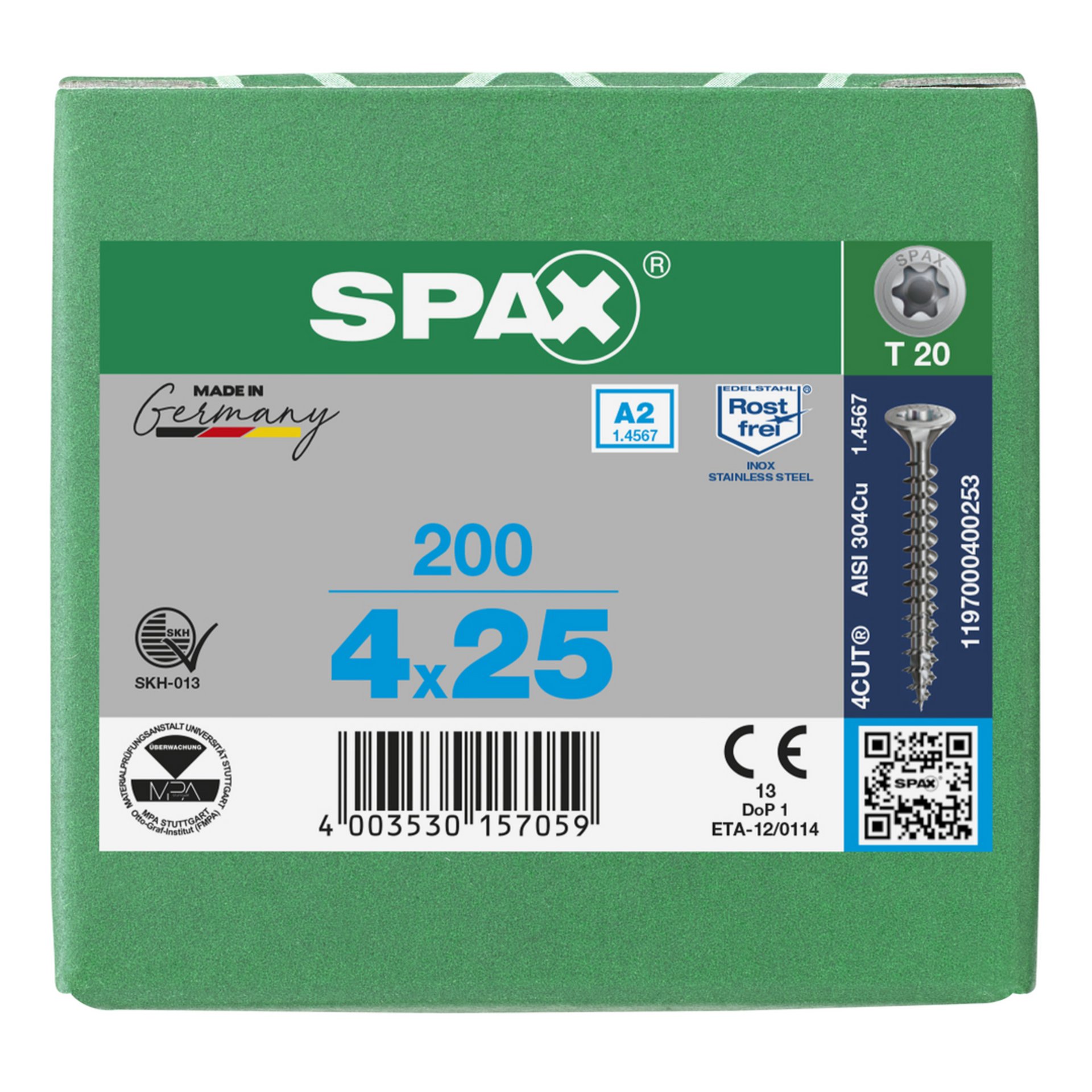 Spax Schrauben V2A Torx 4,0X25 T20 Senkkopf Vollgewinde 200Stk 1197000400253