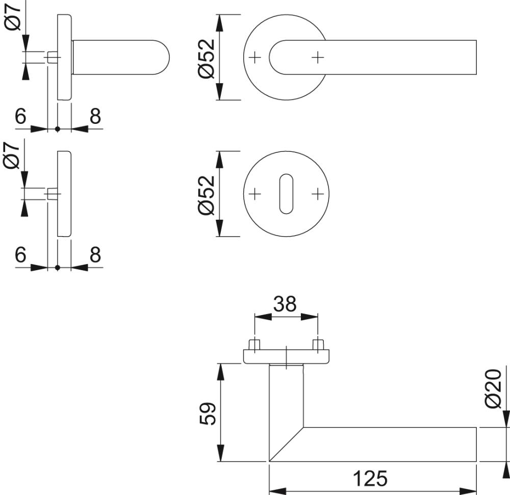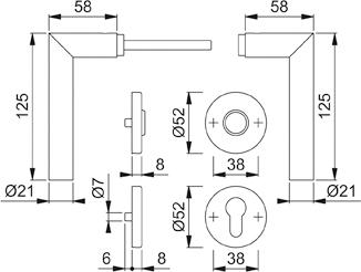• Türgriffe mit HOPPE-Schnellstift-Verbindung (mit HOPPE-Vollstift), Rosetten mit Kunststoff-Unterkonstruktion