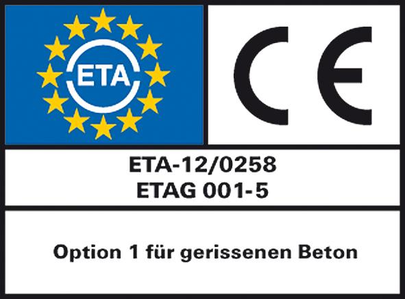 Zugelassen für Verankerungen in: Beton C20/25 bis C50/60, gerissen und ungerissen